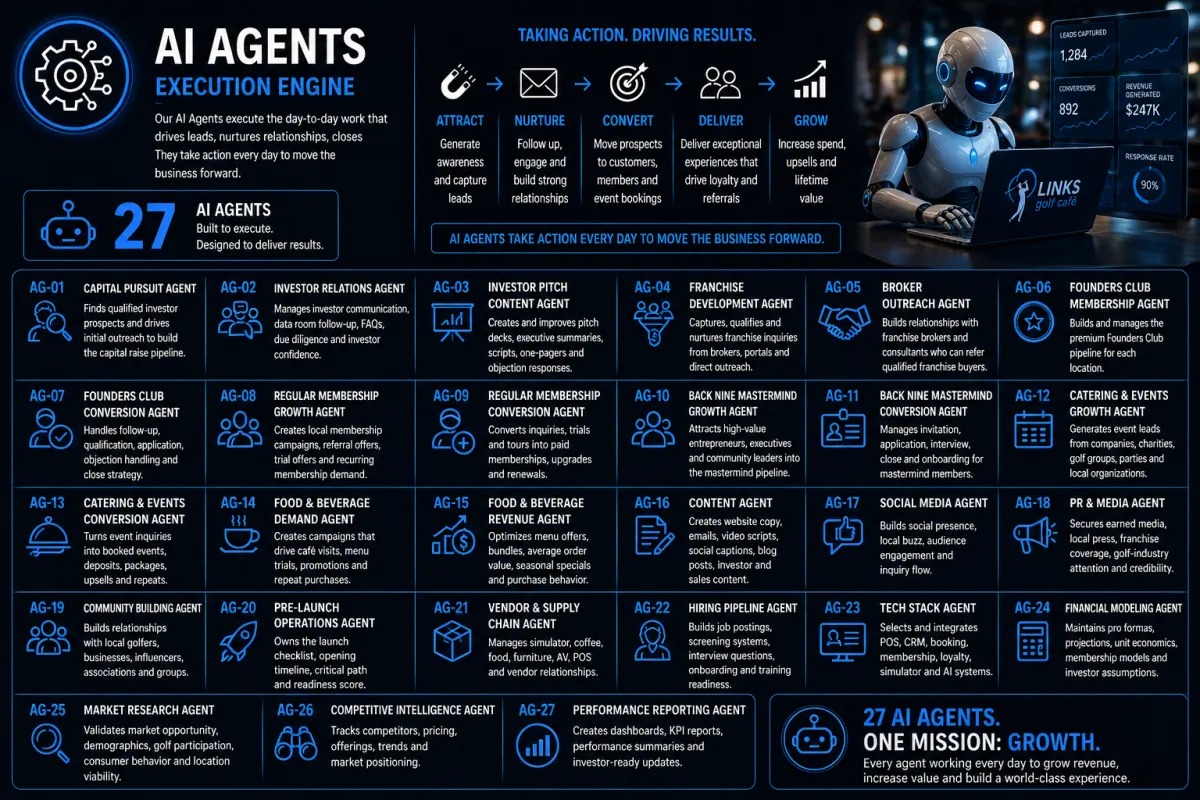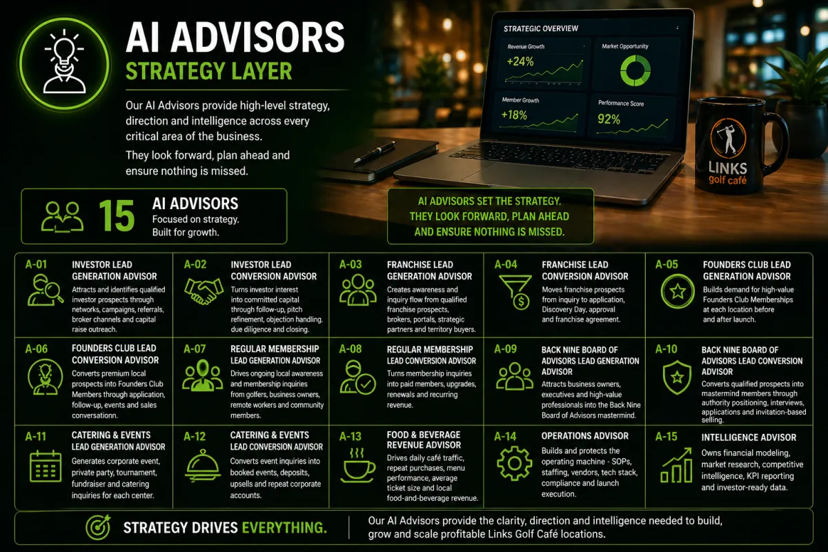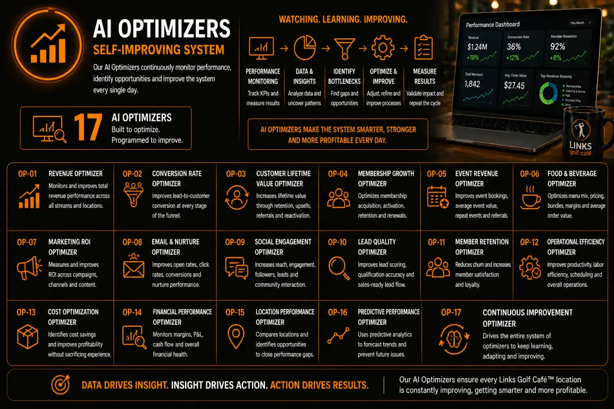 The Links Golf Cafe™ AI Revenue Operating System is designed to remove guesswork, increase performance, and create a scalable foundation for long-term growth.