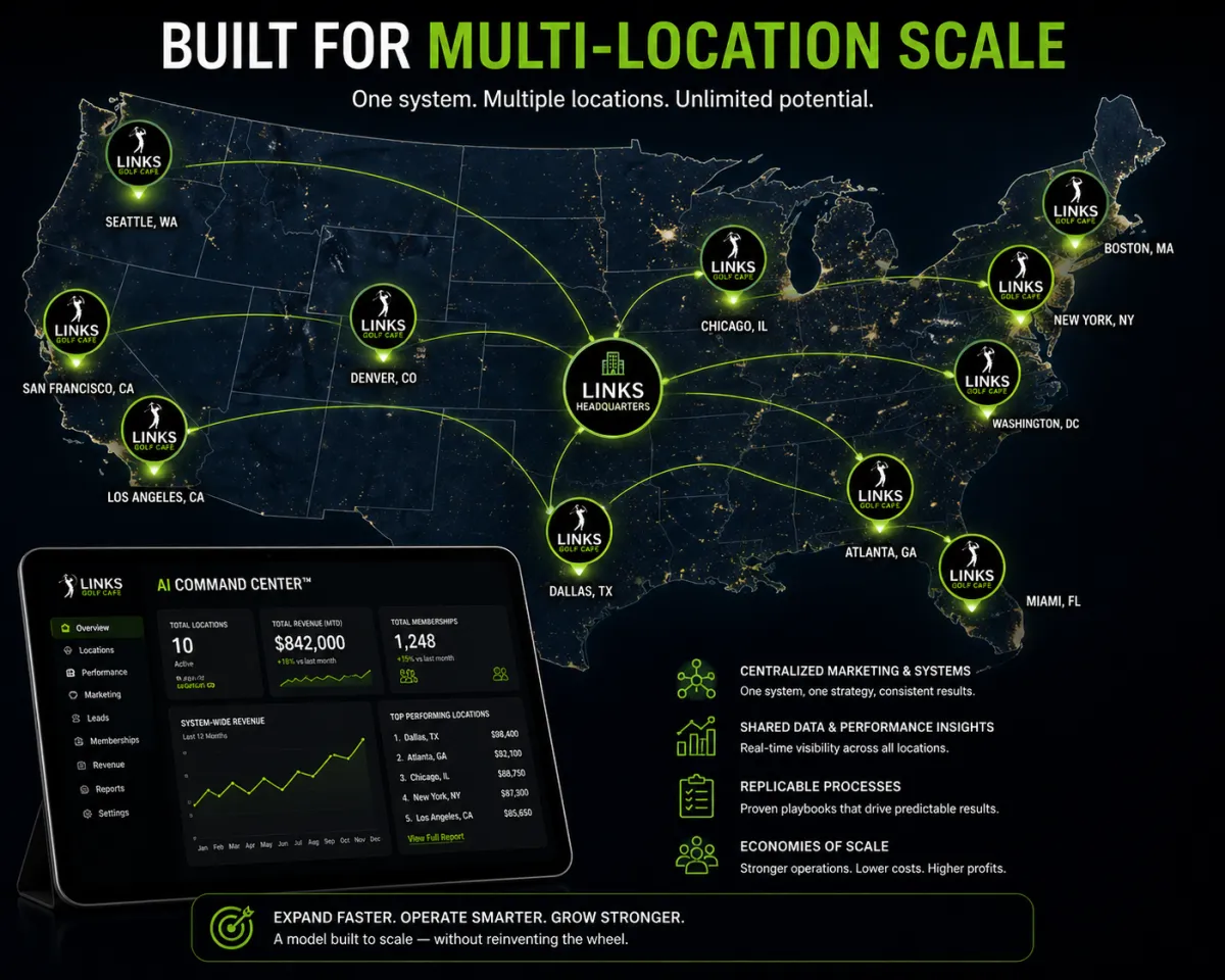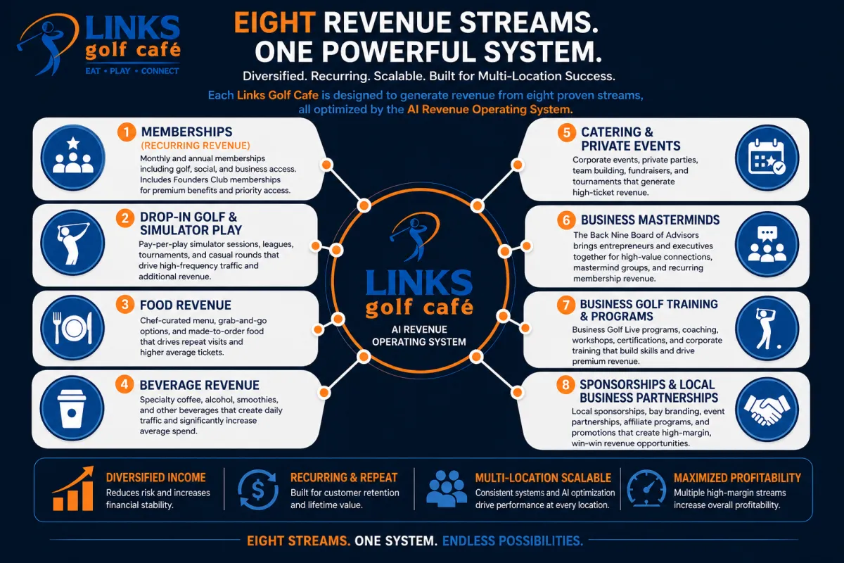 Links Golf Cafe™ is not just a place to visit - it is a system designed to generate revenue, operate efficiently, and scale across multiple locations.